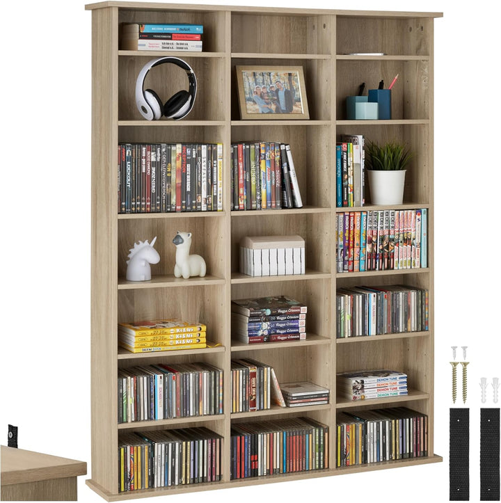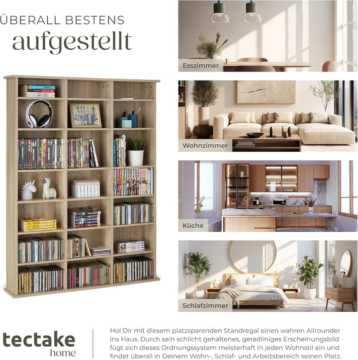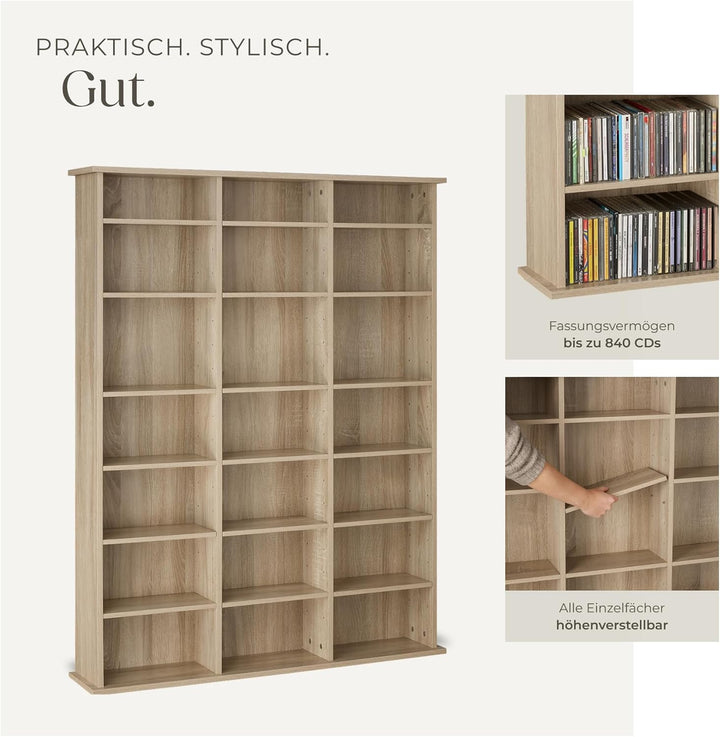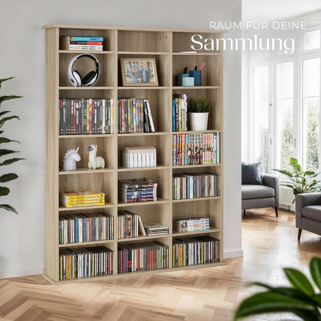 - DVD STÄNDER UND CD REGAL HOLZ HÄLT ORDNUNG: Du hast zu viele Medienartikel und keinen Platz mehr? Mit diesem Regal Sonoma Eiche bringst Du Ordnung in Deine Sammlung! Der grosse Stauraum bietet Platz für all Deine CDs, DVDs oder sogar Dekoartikel.