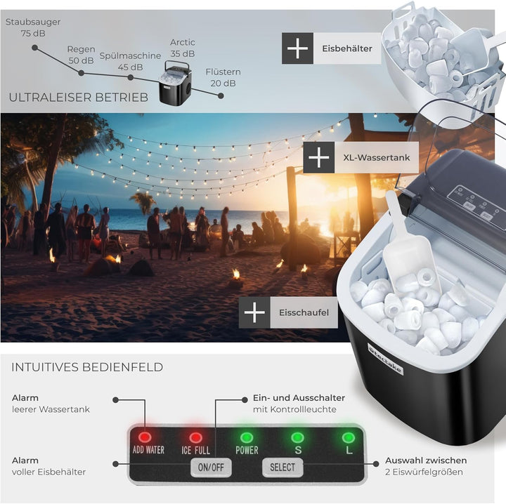 - ICEMAKER KOMFORTABEL UND PRAKTISCH: Der abnehmbare Griff an unseren Eiswürfel Maschinen sorgt für eine einfache Handhabung. Der herausnehmbare Eiskorb und die mitgelieferte Eiswürfelschaufel machen die Entnahme aus der Eiswürfel Maschine besonders