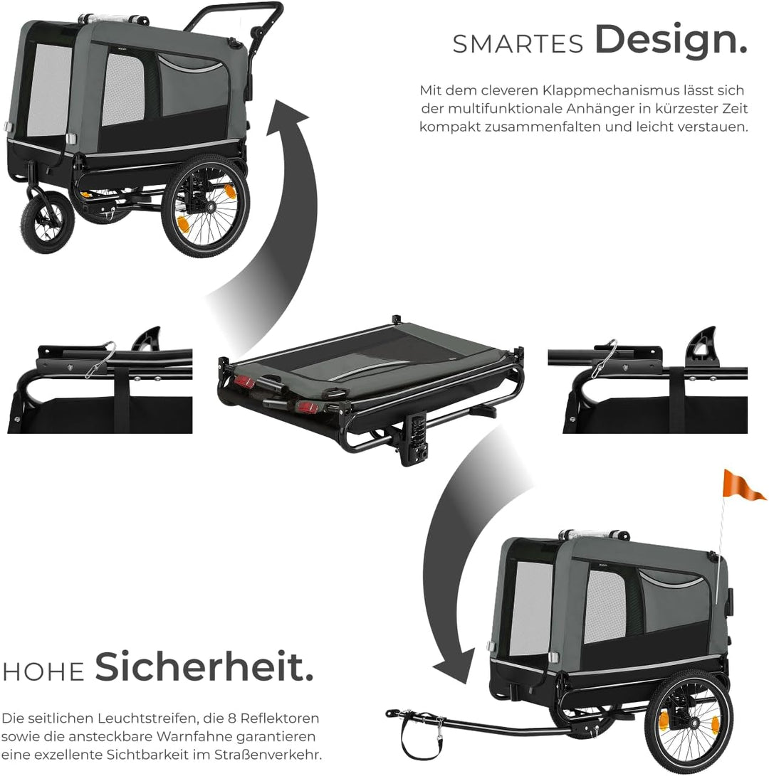 - UMWANDELBAR & PRAKTISCH: Dein Hundewagen ist blitzschnell bereit für jede Aktivität. Verwandle den Fahrrad Anhänger mit der klappbaren Deichsel und dem schnell montierbaren Vorderrad in wenigen Sekunden vom Anhänger in einen Jogger. Ideal für die