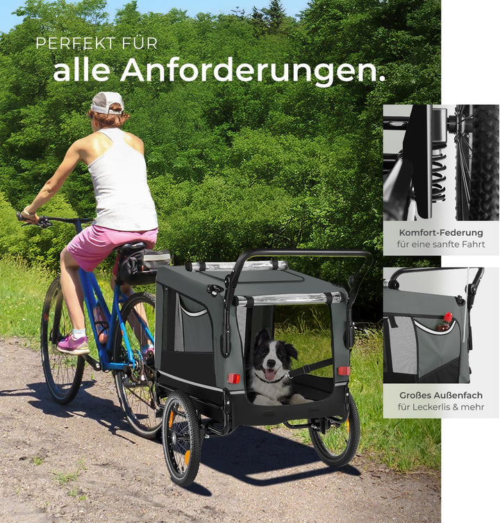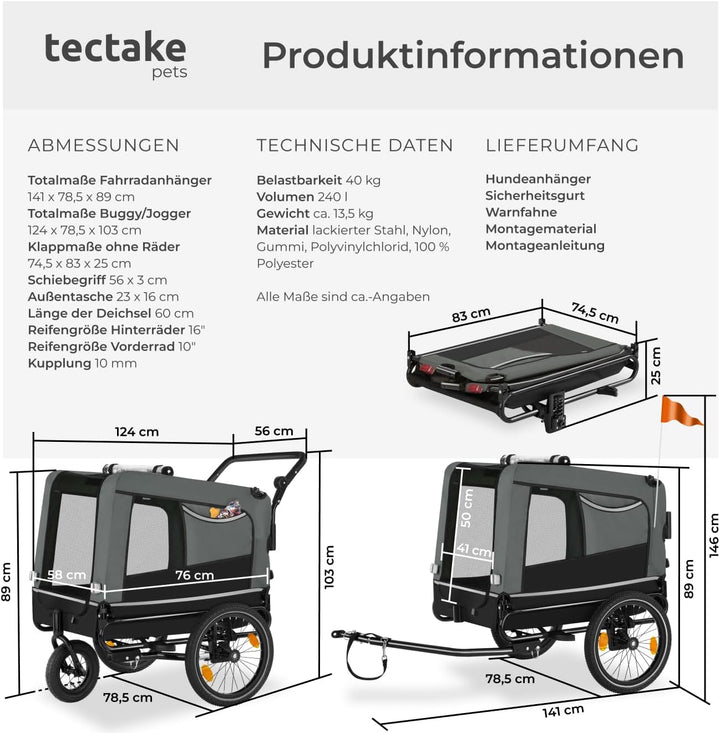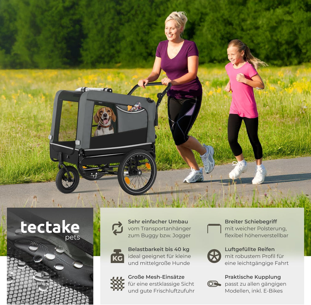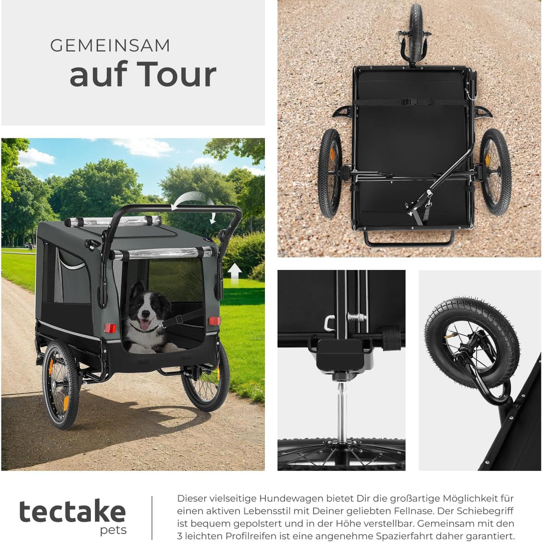 - ABENTEUER AUF VIER PFOTEN: Der Hundeanhänger von tectake macht jede Tour mit Deinem Hund zu einem unvergesslichen Erlebnis. Ob als Fahrradanhänger oder Hundebuggy, dieser Begleiter ist ideal für Haustiere, die das Abenteuer lieben. Mach Dich bereit