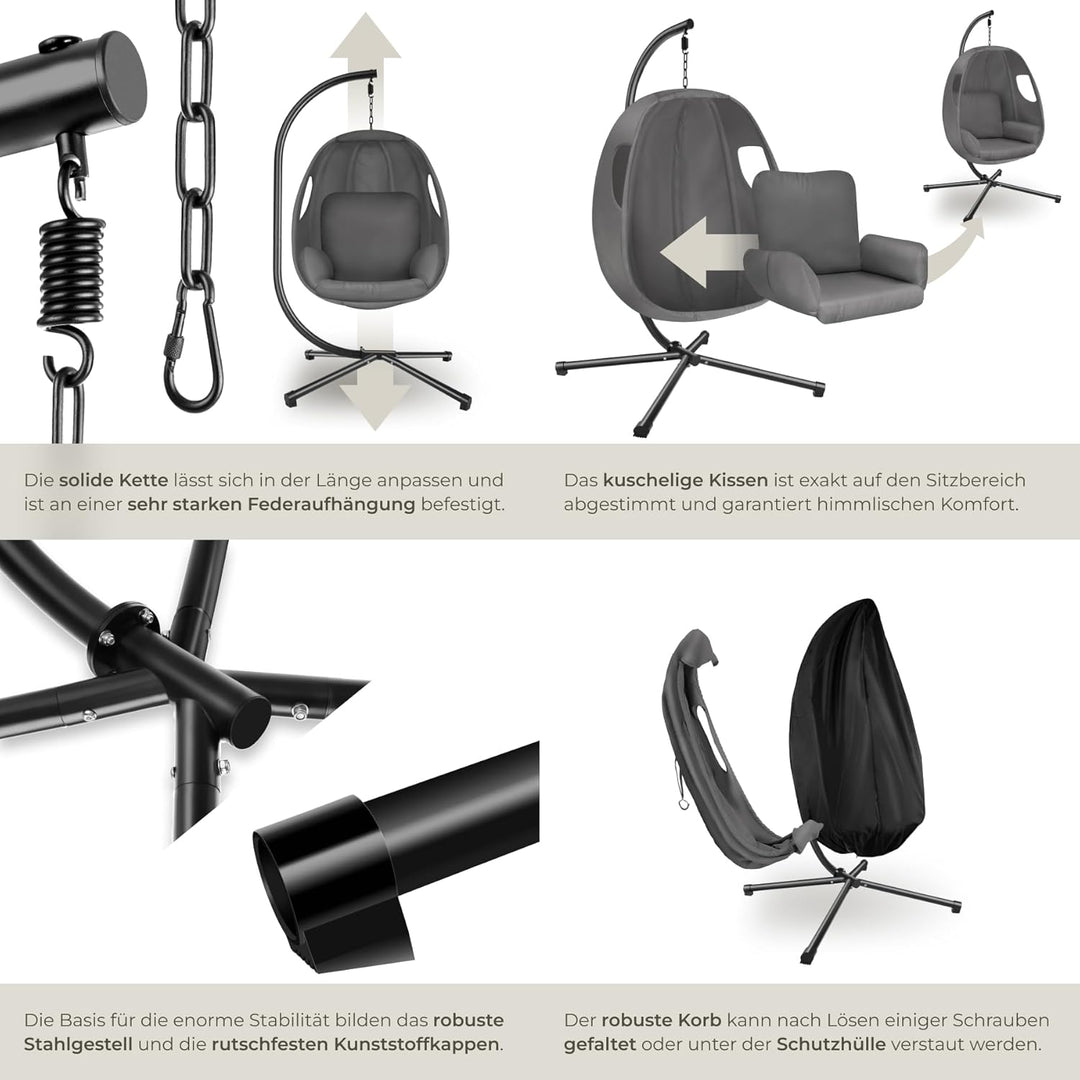 - SCHAUKELSESSEL ROBUST UND LANGLEBIG: Erlebe maximalen Komfort und Stabilität mit unserer Hängeschaukel, ausgestattet mit einem pulverbeschichteten Hängesessel Gestell aus Stahl und vier standfesten Beinen. Die rutschfesten Kunststoff-Endkappen