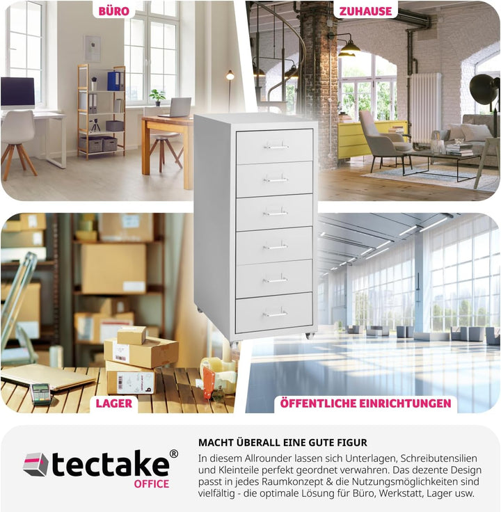 - KLEINER SCHRANK MIT ZEITLOSEM DESIGN: Der tectake Rollcontainer mit Schubladen überzeugt durch sein zeitloses und stilvolles Design, das sich in jede Büroumgebung einfügt. Das elegante Erscheinungsbild kombiniert mit hoher Funktionalität macht diesen
