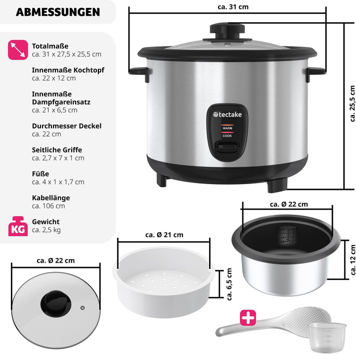 - SPEZIALGERÄTE MIT VIELSEITIGER VERWENDBARERKEIT: Unser Reiskocher ist das Multitalent In Sachen Kochtöpfe und Küchengeräte. Mit einem praktischen Dampfgareinsatz ausgestattet, ermöglichen unsere Töpfe die Zubereitung von Reis und Dampfgerichten.
