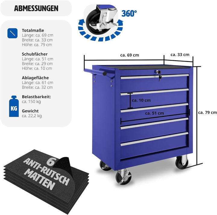 - ORGANISIERTE AUFBEWAHRUNG: Dieser robuste Werkzeugwagen verfügt über fünf grosszügige, verschliessbare Schubfächer, die Deine Werkzeuge sicher und organisiert halten. Mit kugelgelagerten Gleitschienen für müheloses Öffnen und Schliessen. Nie