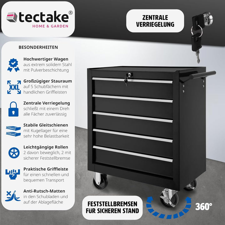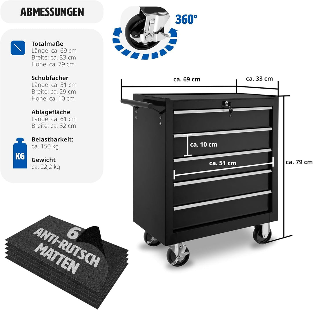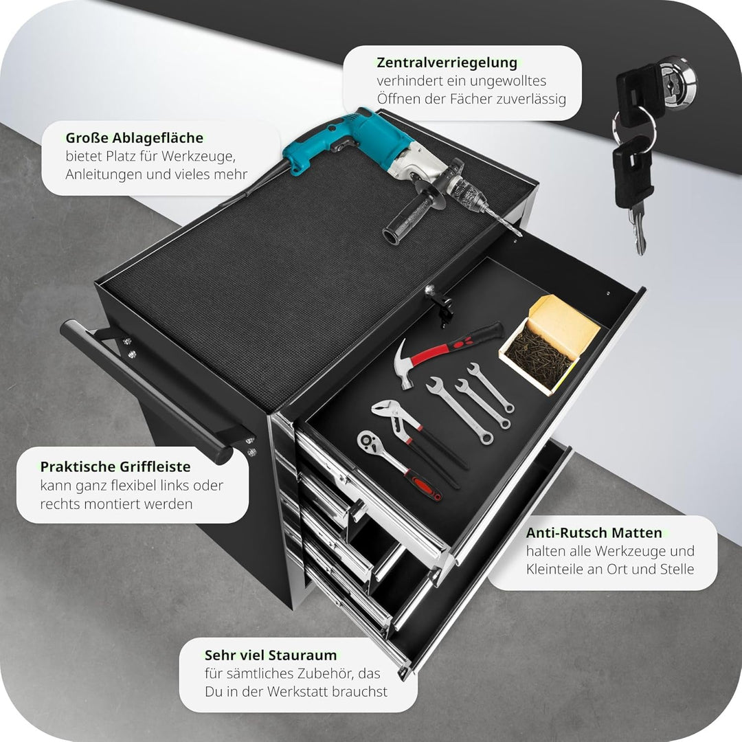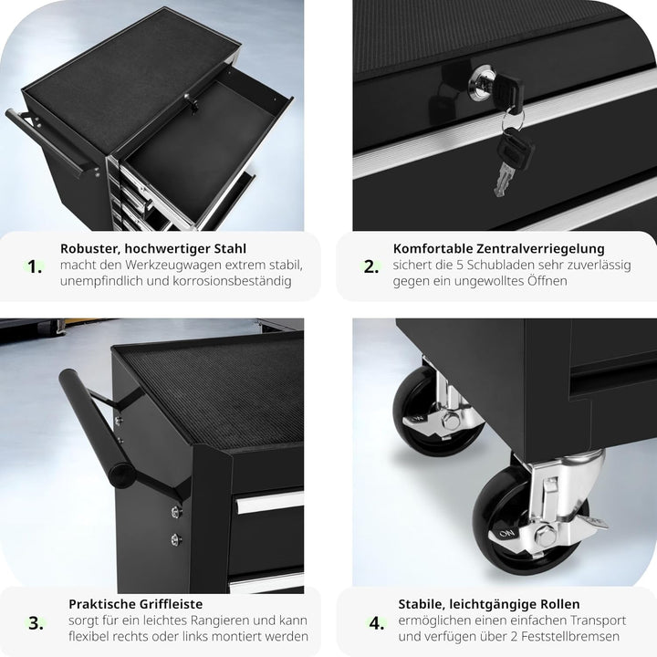 - ORGANISIERTE AUFBEWAHRUNG: Dieser robuste Werkzeugwagen verfügt über fünf grosszügige, verschliessbare Schubfächer, die Deine Werkzeuge sicher und organisiert halten. Mit kugelgelagerten Gleitschienen für müheloses Öffnen und Schliessen. Nie