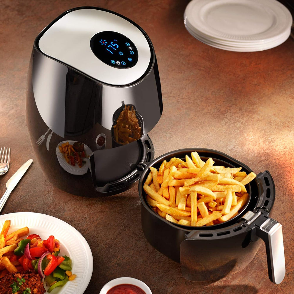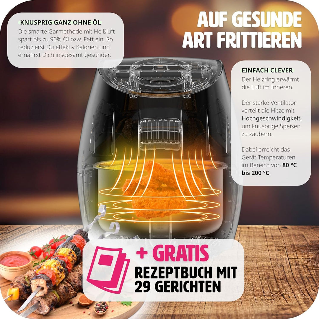 - GESUND GENIEssEN, OHNE VERZICHT: Mit unserem Fryer kannst Du köstliche Gerichte ohne die Nachteile von Frittieröl zubereiten. Knusprige Pommes, saftiges Hähnchen und knuspriges Gemüse werden dank Heissluft ohne fettige Nebenwirkungen serviert.