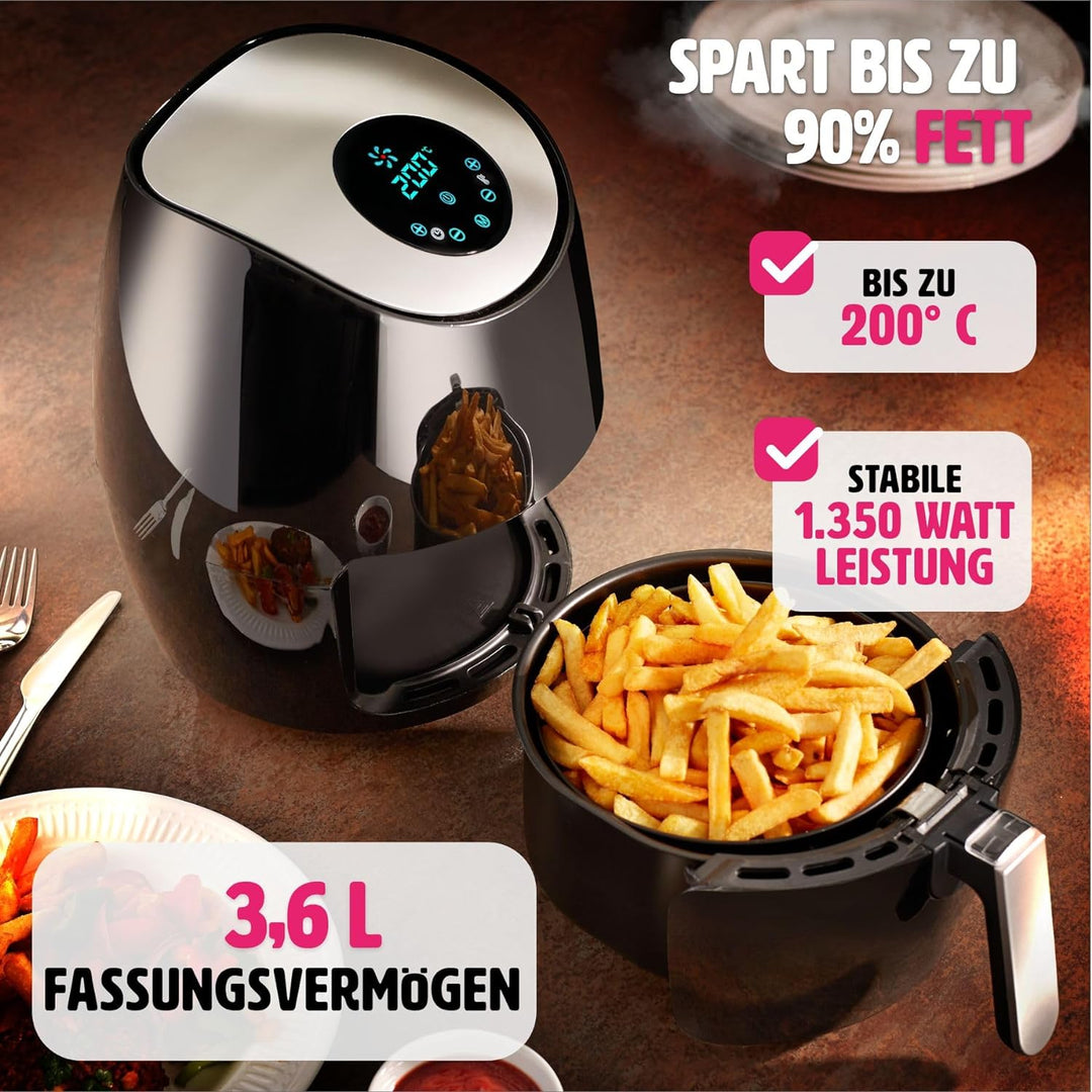 - KAPAZITÄT UND KREATIVITÄT: Unsere Heissluftfritteuse mit einem Fassungsvermögen von 3,6 Litern ermöglicht es Dir, kulinarische Meisterwerke zu zaubern. Von Familienmahlzeiten bis zu Dinner-Partys – die Möglichkeiten sind endlos.