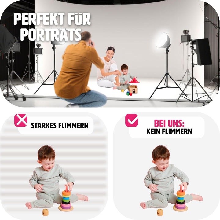 - Universell einsetzbar als Haupt- oder Ergänzungslicht – im Fotostudio, oder bei Freiluftaufnahmen