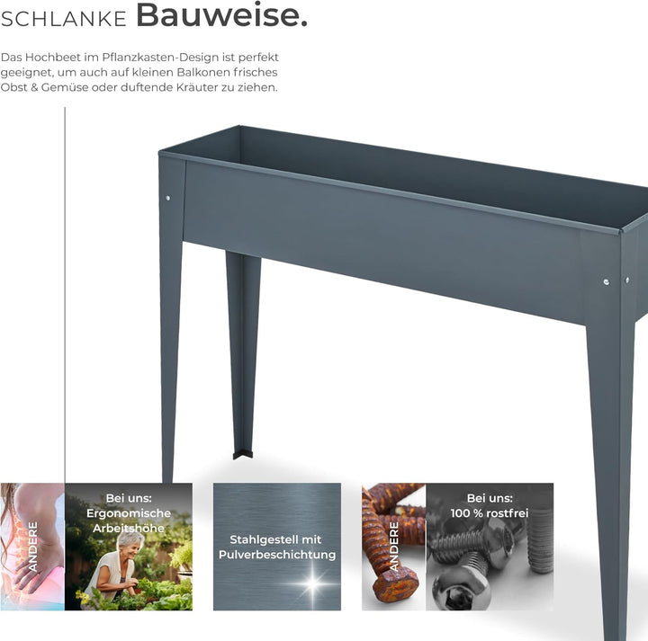 - KEIN BÜCKEN: Die angenehme Höhe des Pflanzkastens ermöglicht ein bequemes Arbeiten und schont den Rücken.