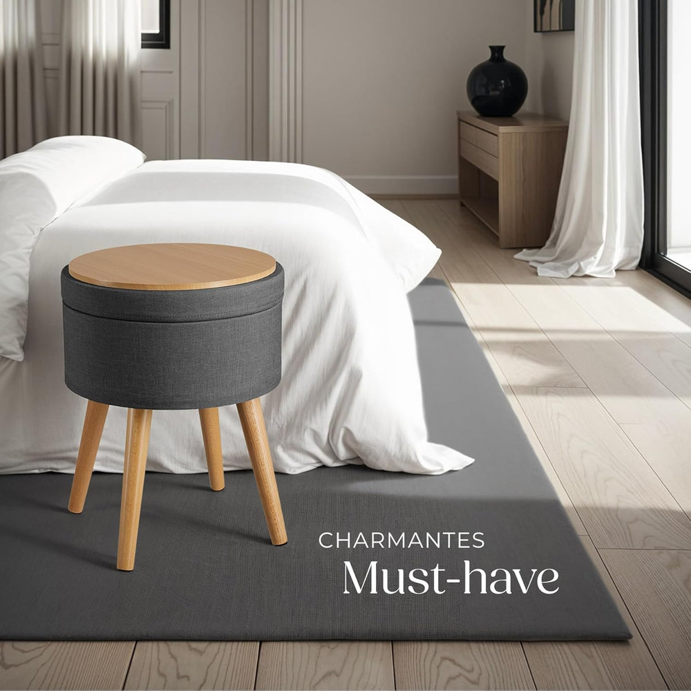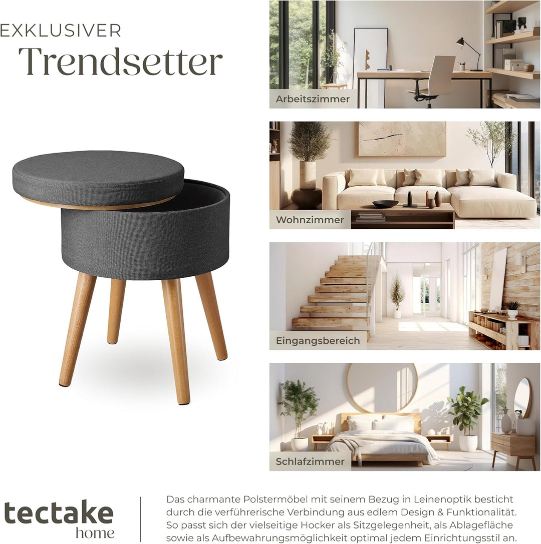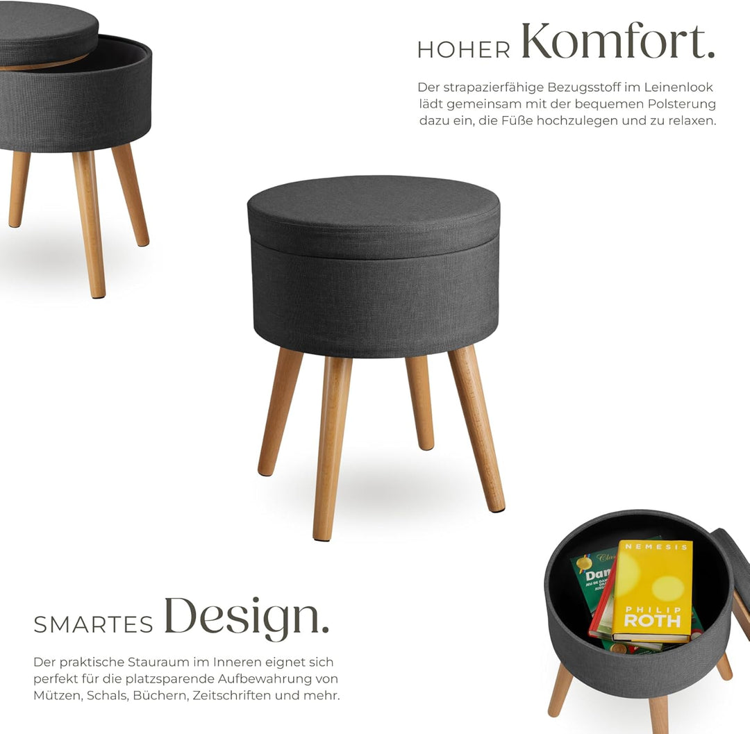- DURCHDACHTES DESIGN: Dass der handliche Hocker viel mehr ist, als ein gut aussehendes Deko-Element, beweist die hohe Belastbarkeit, das praktische Staufach und die angenehme Polsterung.