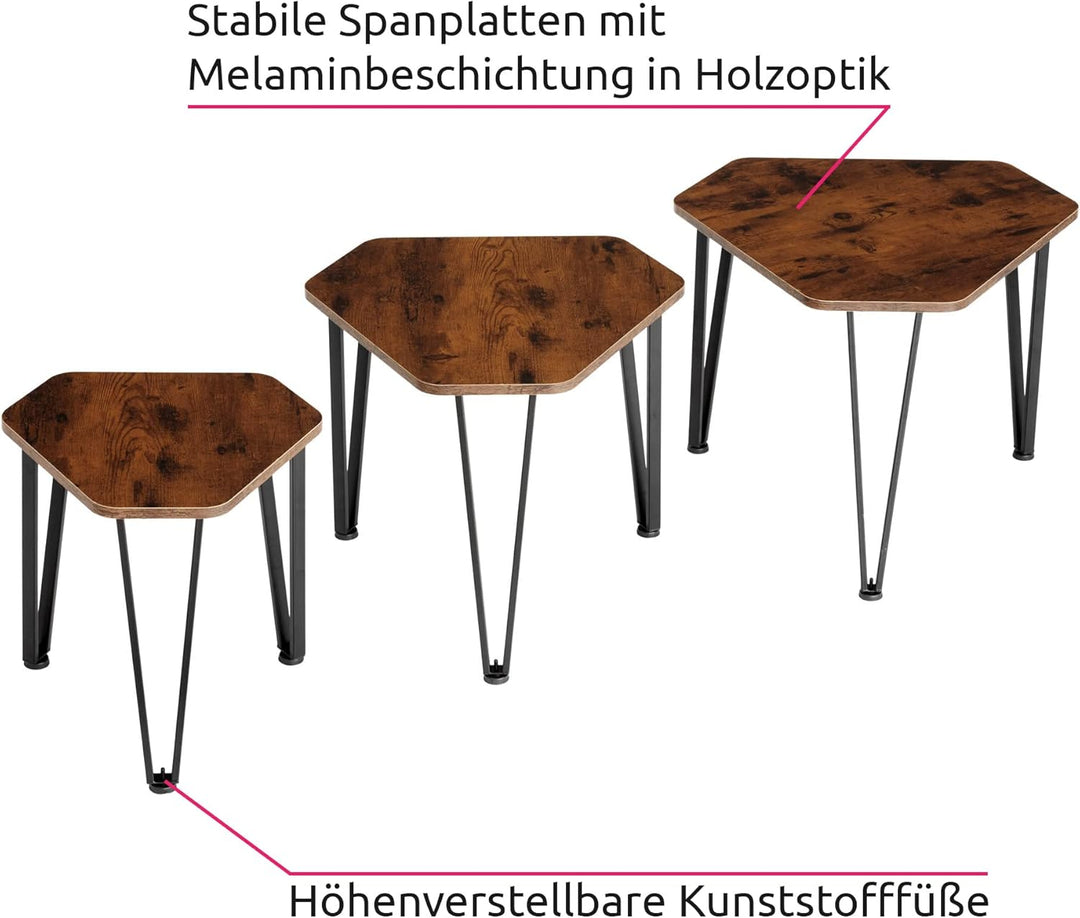 - DREI ECHTE HINGUCKER: Setze modische Statements im markanten Industrial Style in Deiner Wohnung mit dem dreiteiligen Beistelltisch-Set Torquay von tectake.