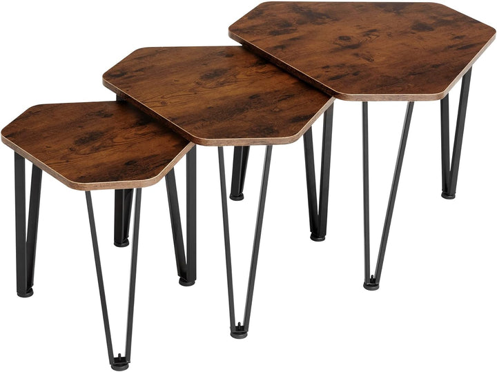 - VIELSEITIGE VERWENDUNG: Die sechseckigen Tischplatten mit ihrer feinen Maserung schaffen neben Sofa, Sessel und Bett charmante Ablageflächen für Getränke, Lesestoff oder eine zierliche Leuchte.