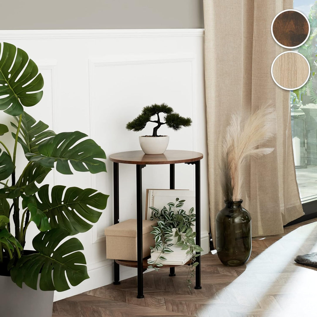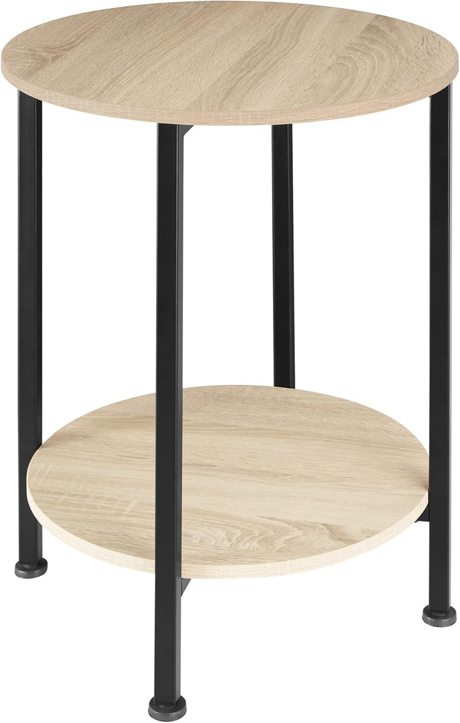tectake Beistelltisch rund aus Holz und Metall, Industrie-Design, Couchtisch mit 2 Ablagen, für Wohn