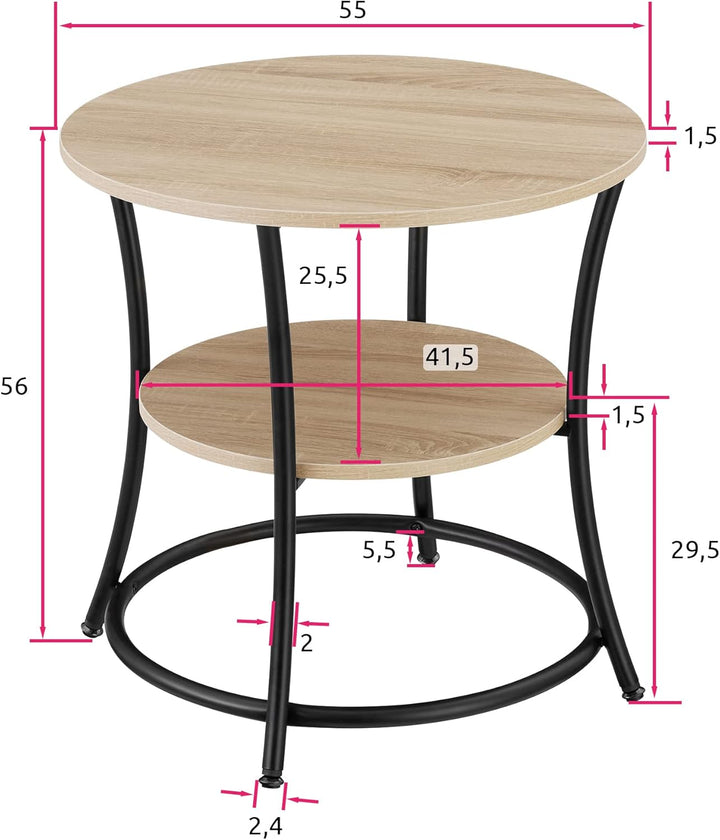 - PRODUKT-DETAILS: Totalmasse (ØxH): ca. 55 x 56 cm // Durchmesser obere Ablage: ca. 55 cm // Durchmesser untere Ablage: ca. 41,5 cm // Dicke der Spanplatten: ca. 1,5 cm // Durchmesser Stahlgestell: ca. 2 cm // Verstellbarkeit der Gelenkfüsse: ca. 1 cm