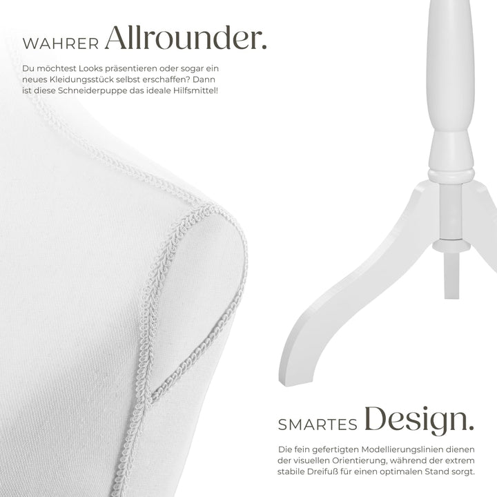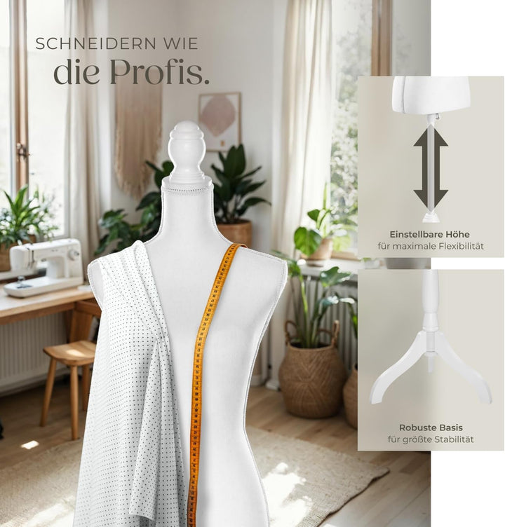 TecTake Damenbüste Schneiderpuppe Büste Torso mit Holzstandfuss | Höhenverstellbar: 133 – 168 cm - D