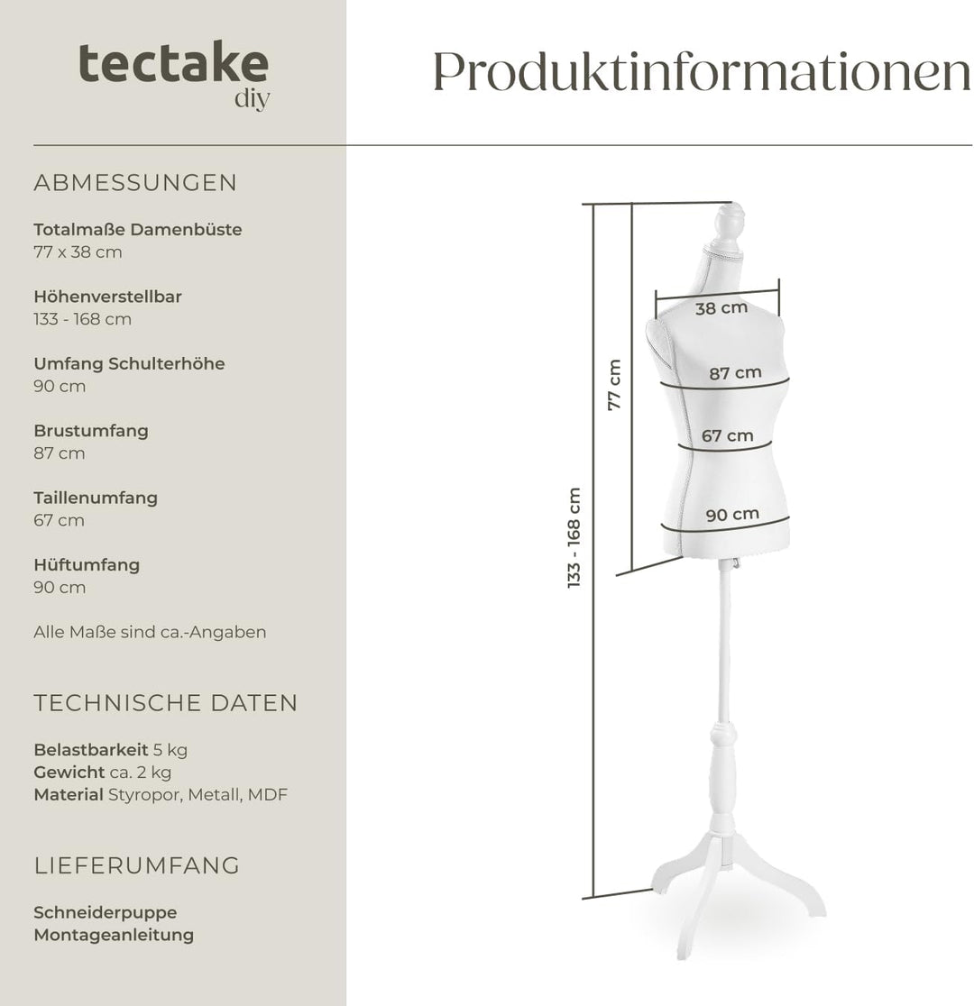 • Die wunderschöne Schneiderpuppe Damenbüste von TecTake ist perfekt für Mode- und Textilpräsentationen in Schaufenstern geeignet oder auch einfach als wundervolle Deko für Zuhause.