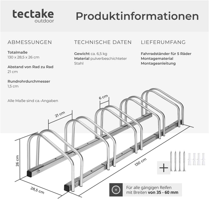 - Hochwertiger Fahrradständer zum Abstellen von Fahrräder von TecTake // Totalmasse (LxBxH): 130 x 28,5 x 26 cm