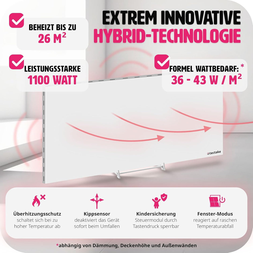 - SICHERTHEIT ZUERST: Der Kipp- und Überhitzungsschutz und die Erkennung plötzlicher Temperaturabfälle garantieren Sicherheit. Das Hybridmodell Panel sorgt für Wärme, Behaglichkeit und einen modernen Touch und ist für jeden Raum geeignet.