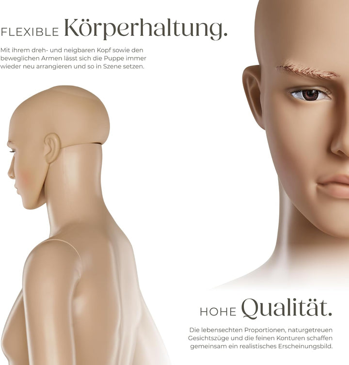 - Das ansprechende und moderne Design der Puppe harmoniert mit den unterschiedlichsten Moderichtungen und Accessoires // Brustumfang: 95 cm // Taillenumfang: 76 cm // Hüftumfang: 96 cm.