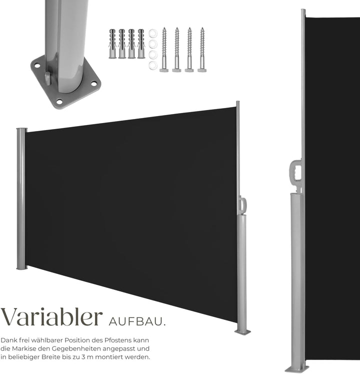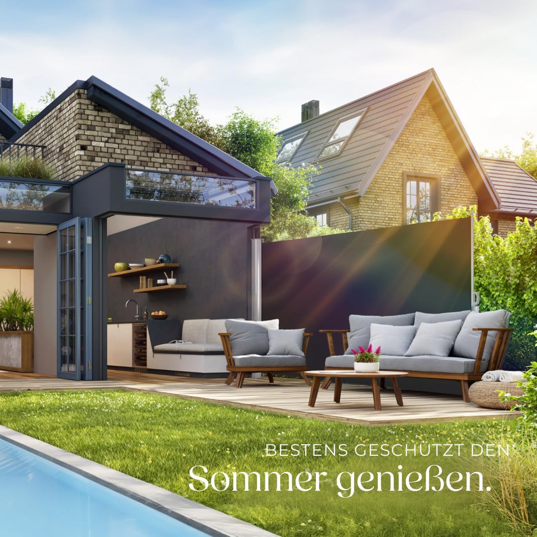 - MULTIFUKTIONAL: Da sowohl die Seitenmarkise ausziehbar ist, wird auch dein Sichtschutz ausziehbar ! Du kannst sie neben Sonnen- und Windschutz daher auch als Sichtschutz Zaun im Garten einsetzen. Geniesse deine neu gewonnene Privatsphäre in vielerlei