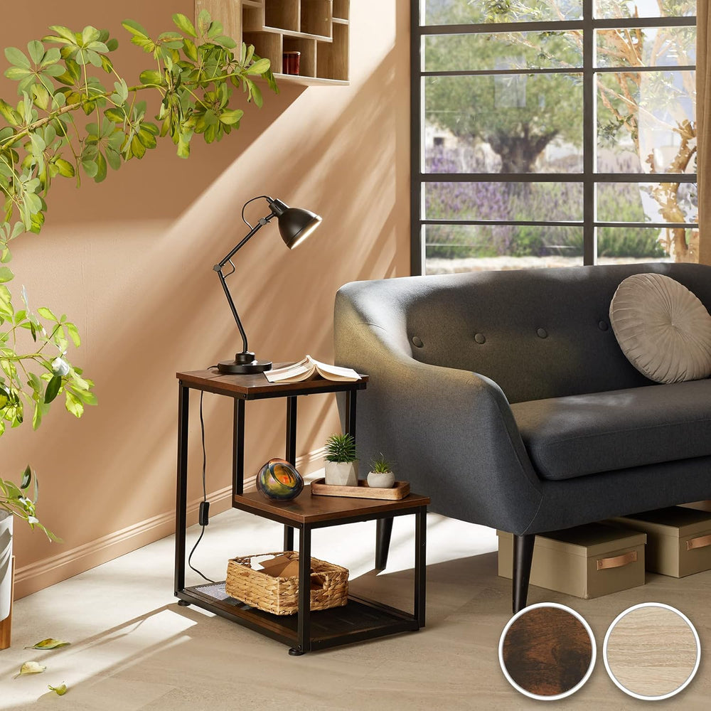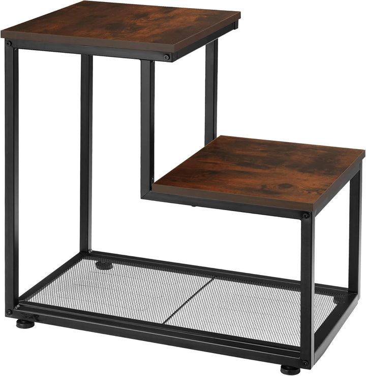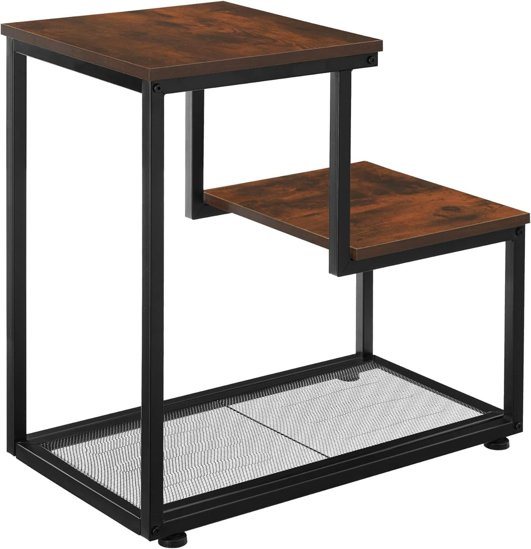 tectake Beistelltisch aus Holz und Metall, Industrial Design, Couchtisch mit 3 Ebenen, Gitterablage
