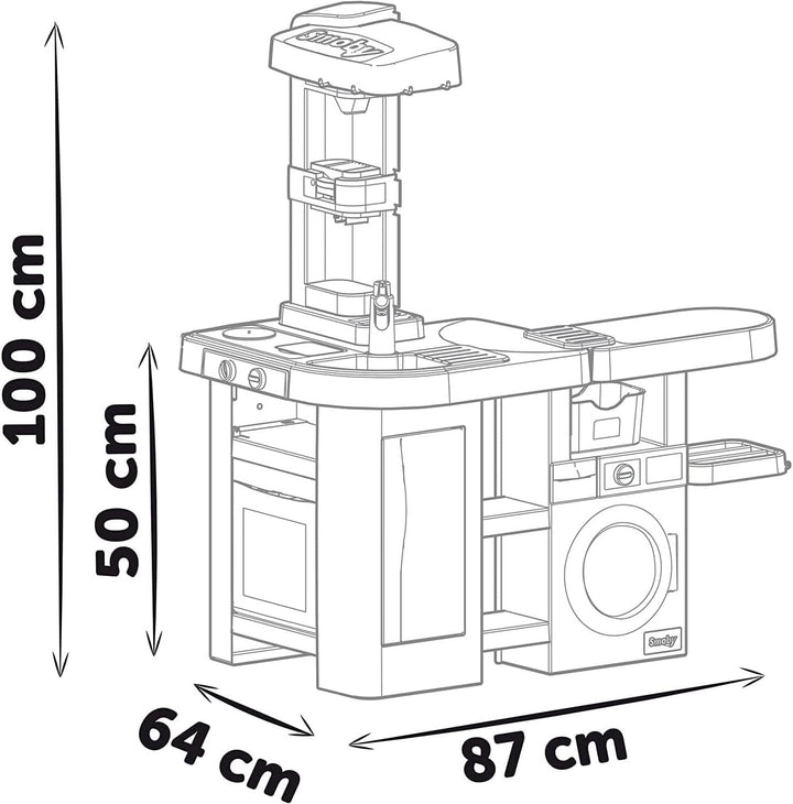 - XL Waschküche für Kinder - Kochen & Waschen in einer Spielstation (100x64x87cm): Direkt neben der Küchenzeile mit Herd, Ofen & Spüle befindet sich die Waschmaschine mit Bügeleisen & Bügelbrett