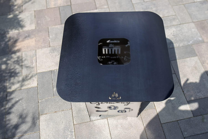 - LIEFERUMFANG: 4mm starke Feuerplatte mit BBQ-Motiv und 15cm Loch | Flaschenöffner im Bullen-Design aus 4mm Stahl!