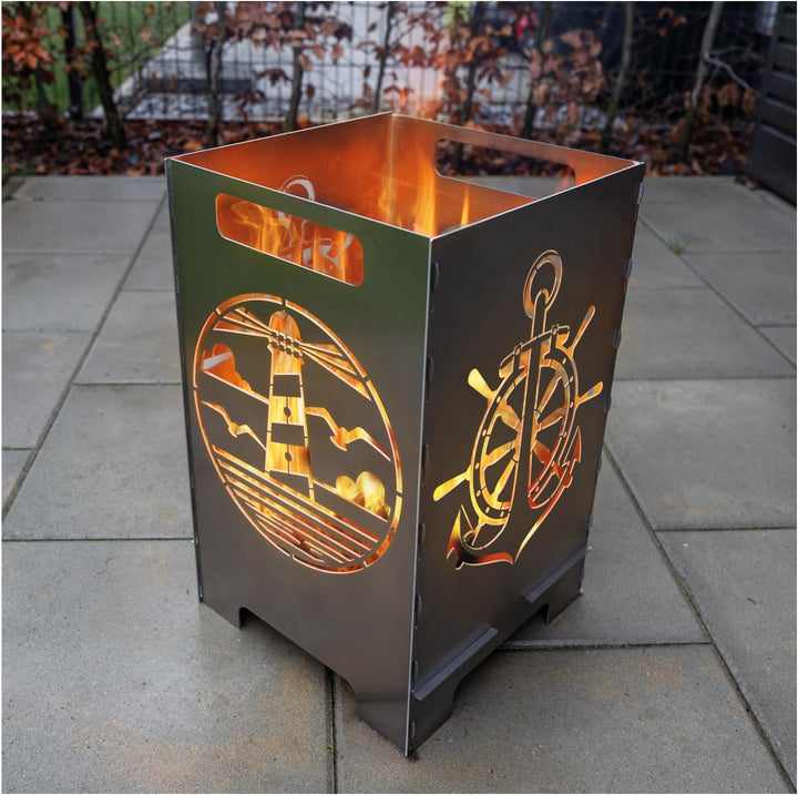 - Feuertonne mit Motiv. Hohe Standfestigkeit, einfaches und sicheres Umstellen mit integrierten Tragegriffen