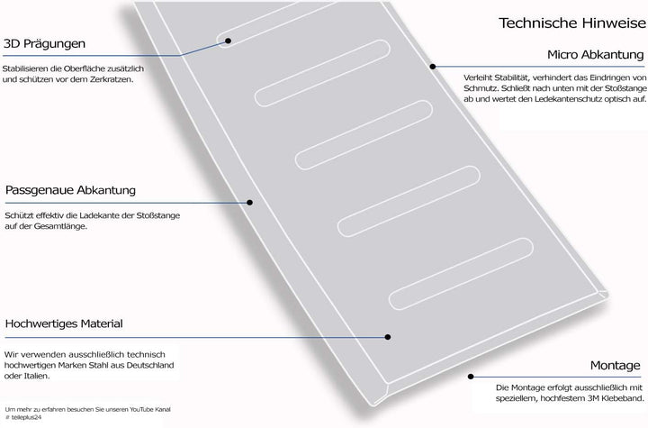 • Lieferumfang: Profil Edelstahl Ladekantenschutz mit Abkantung, ausführliche Video-Montageanleitung und 3M Spezial-Reinigungstuch