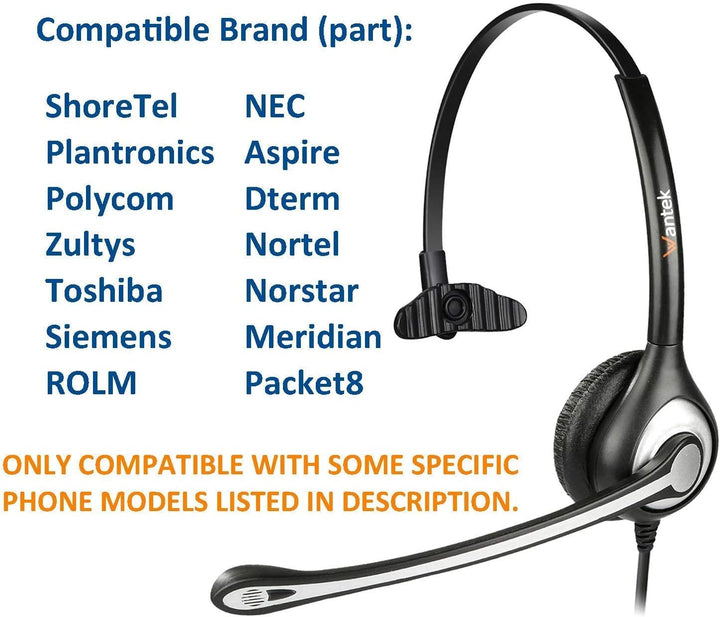 - Lesen Sie die kompatible Telefonliste in der Beschreibung. Direkte Verbindung Über dem Kopf Festnetztelefon headsets arbeitet mit einigen spezifischen Telefonmodelle von ShoreTel Polycom Zultys Toshiba NEC Aspire Dterm Nortel Norstar Meridian Siemens