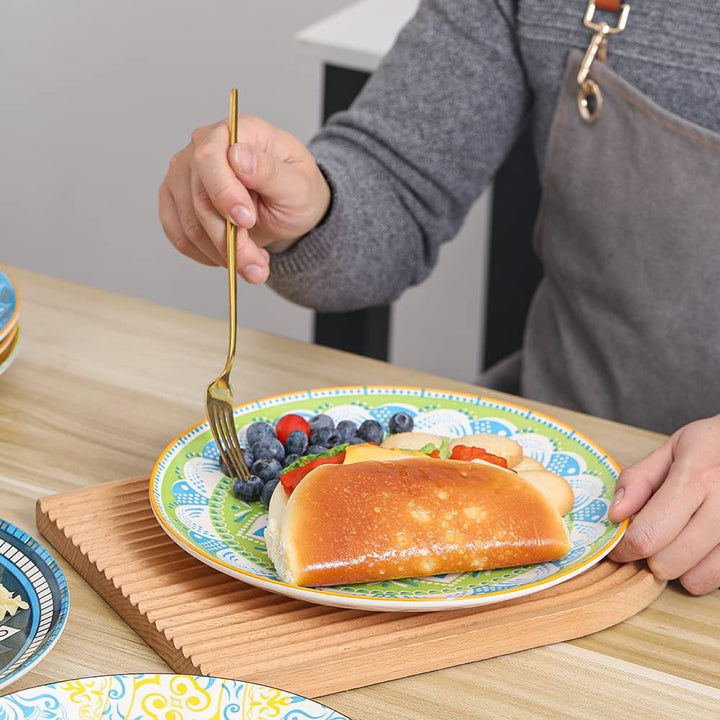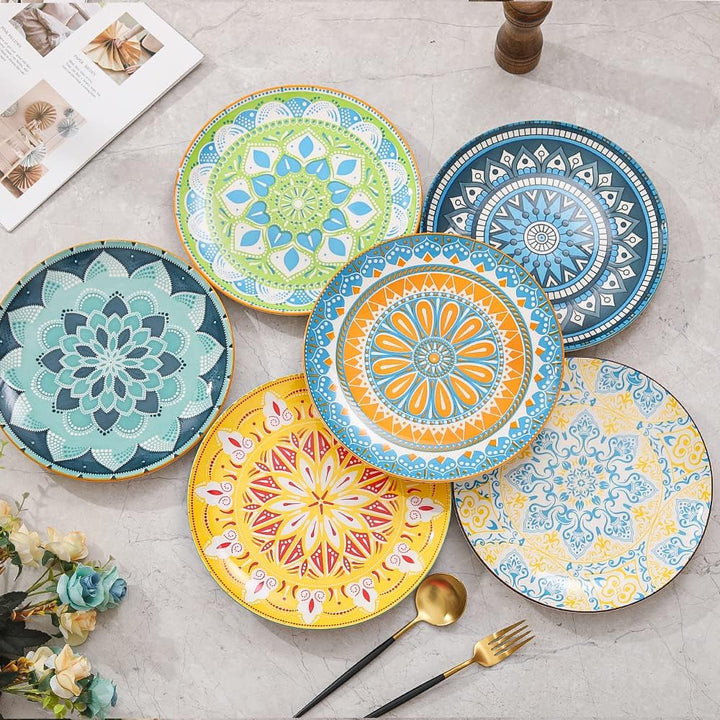 - 【Einzigartig gestaltete Gemustert Teller Bunt】 Im Vergleich zu schlichtem speisenteller gleichen Designs sind die farbige und Muster in jeder unserer flache teller unterschiedlich, was Ihrer Küche viele leuchtende Farben verleihen kann. Auch als