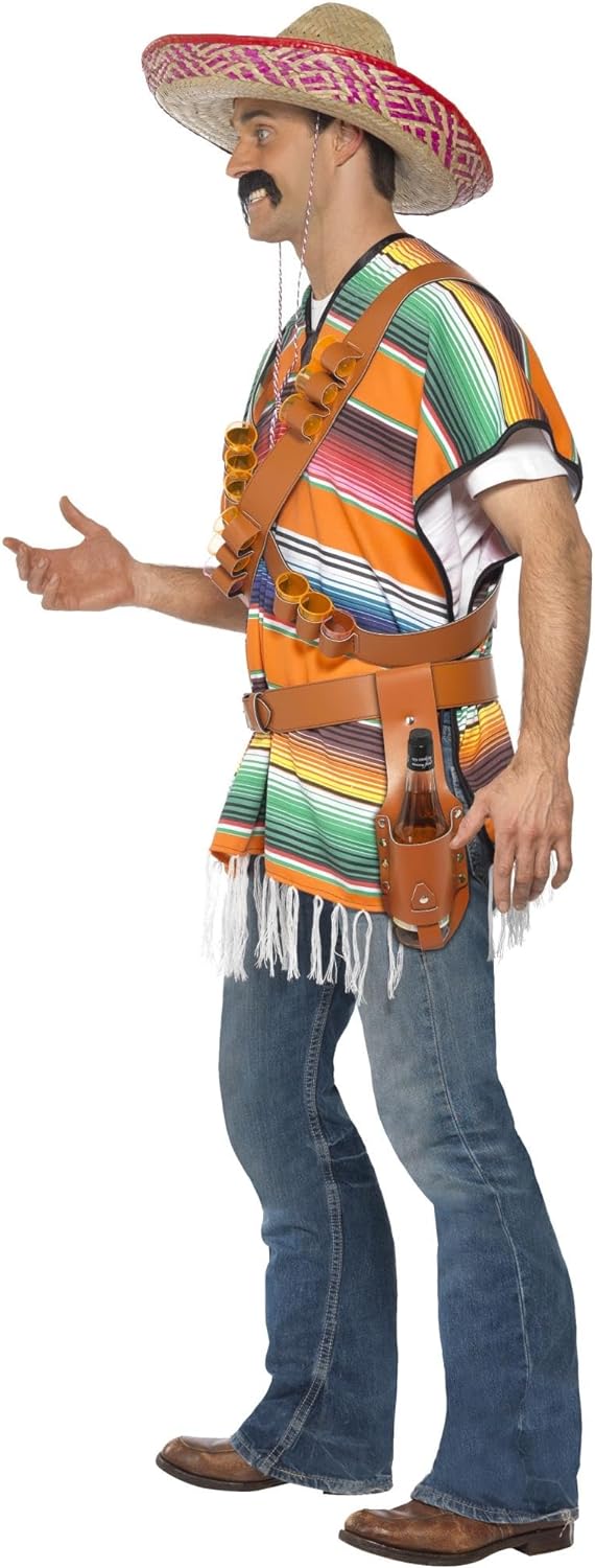 - Tequila Shooter Kostüm für Herren, Inklusive: Poncho, Patronengürtel und Gürtel mit Flaschen-Holster, Ideal für Innen- und Aussenveranstaltungen, Perfekt für Karneval, Halloween oder Themenpartys