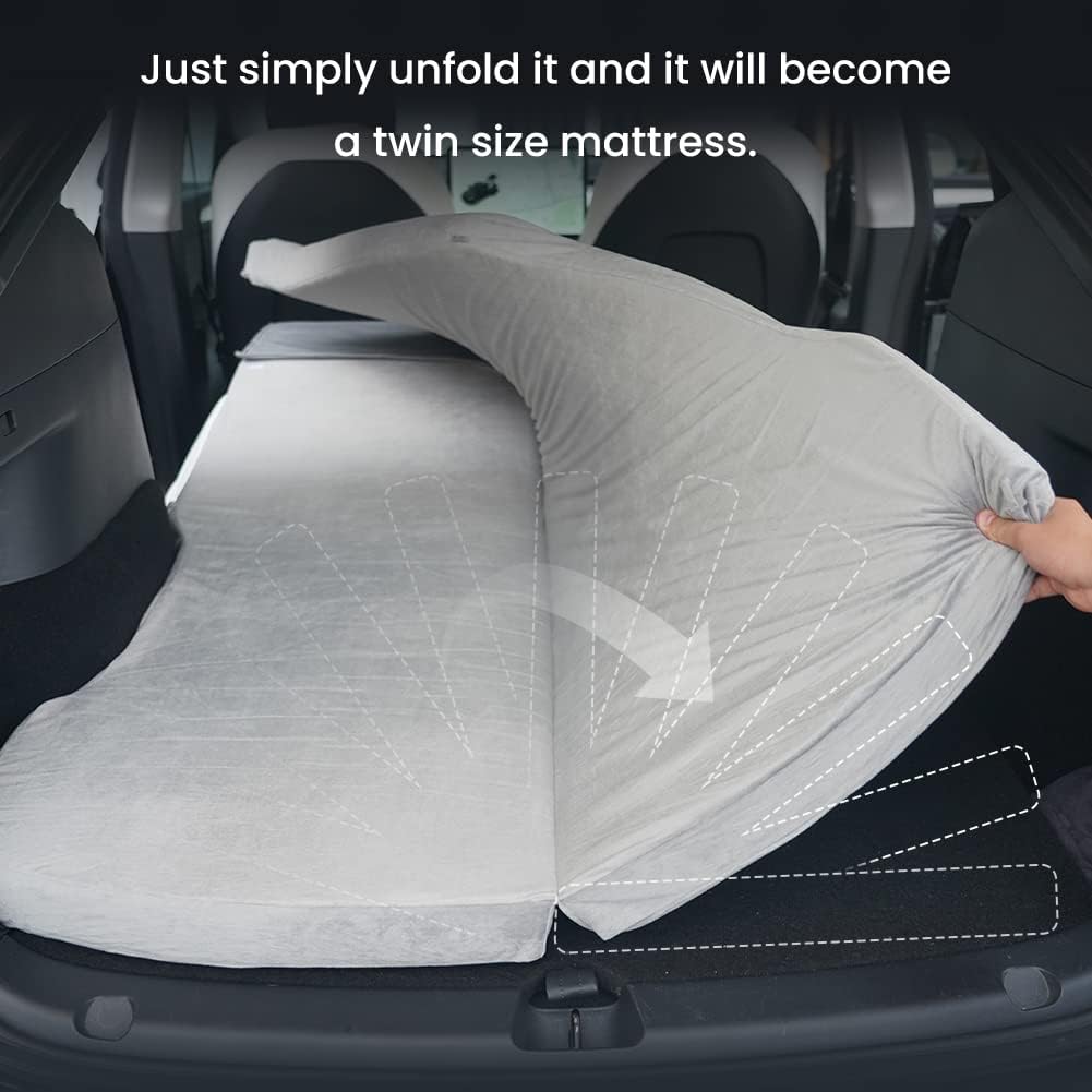 • VERSATILE VERWENDUNG- die Auto Camping Matratze für Tesla Modell Y. Ideal für Boondocking, Road Trips und Auto Camping. Es ist super einfach einzurichten und zu verpacken und viel bequemer als eine Luftmatratze. Das perfekte Geschenk für Outdoor-Enthusiasten. (Bitte beachten Sie, dass das konturierte Teil basierend auf der Stammbodenform des Modells Y entworfen wurde, so dass es Y 100%, X 90% passt)