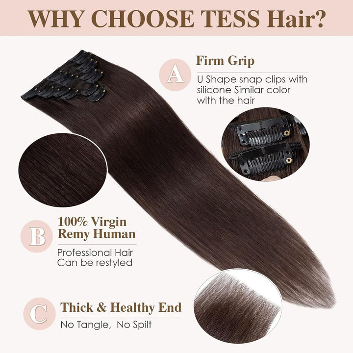 - 【Clip-in-Haarverlängerungen aus echtem Echthaar】 Die Clip in Extensions Echthaar von TESS sehen aus und fühlen sich an wie Ihr natürliches Haar. Sie sorgen für eine nahtlose Mischung und verleihen gleichzeitig Volumen und Länge. Die Extensions