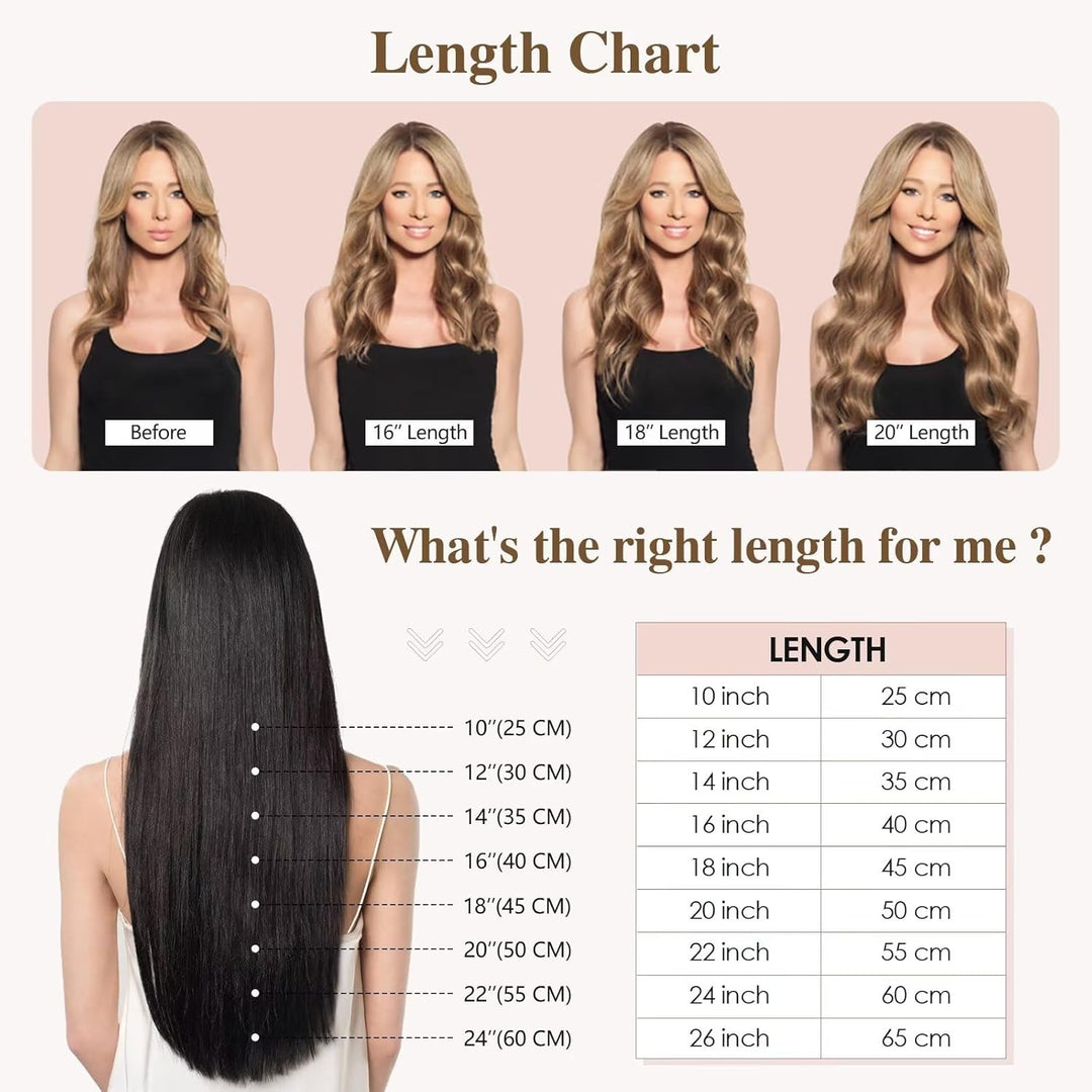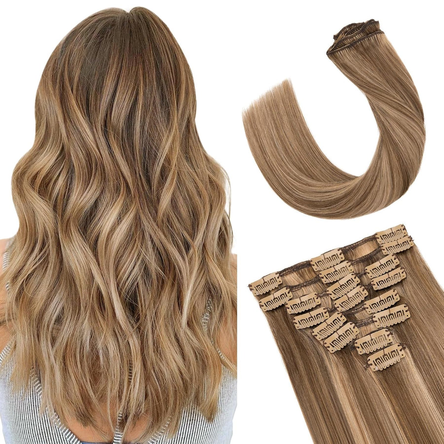 - 8 Tressen Haarverlängerung mit Clips an, fügen Länge und Volumen in 5 Minuten hinzu, ohne Ihr Haar durch Leim oder Klebebänder zu beschädigen.