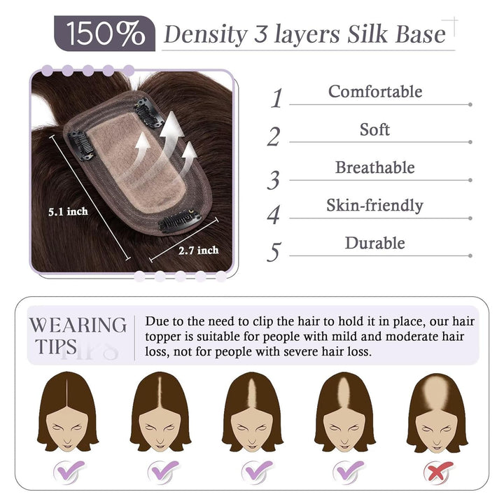 - ❤ Bequeme Seidenbasis: Unser Haarersatz aus Echthaar verfügt über eine eingearbeitete Basis mit drei Schichten weicher Texturen, die das Erscheinungsbild und das Gefühl Ihrer natürlichen Kopfhaut imitieren. Dadurch entsteht eine nahtlose Mischung