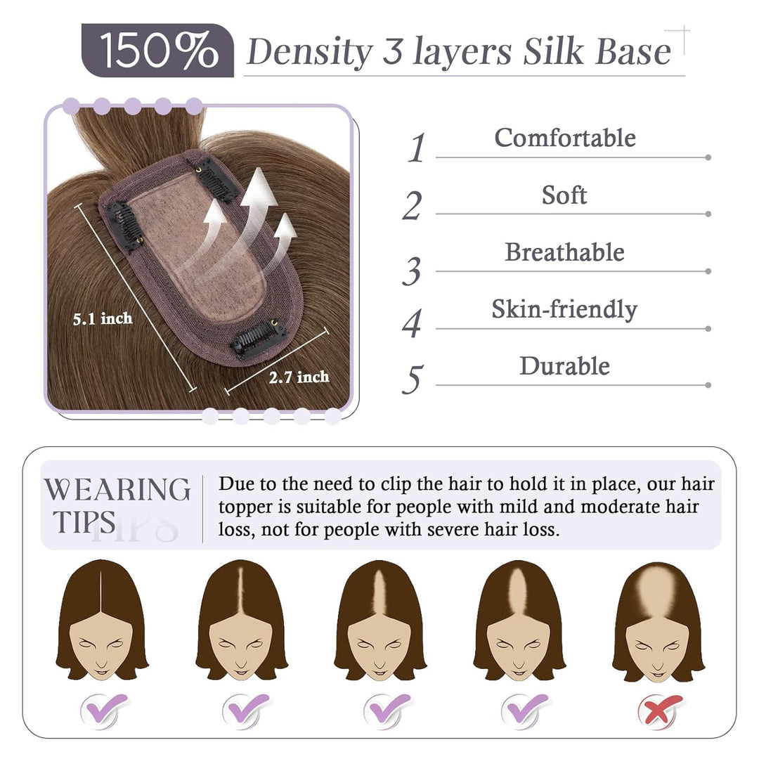 - ❤ Bequeme Seidenbasis: Unser Haarersatz aus Echthaar verfügt über eine eingearbeitete Basis mit drei Schichten weicher Texturen, die das Erscheinungsbild und das Gefühl Ihrer natürlichen Kopfhaut imitieren. Dadurch entsteht eine nahtlose Mischung