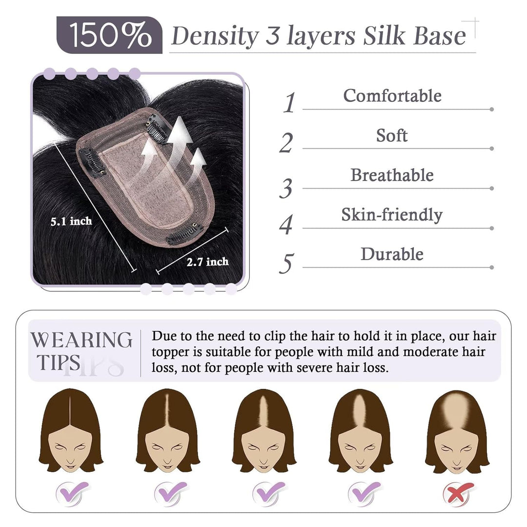 - ❤ Bequeme Seidenbasis: Unser Haarersatz aus Echthaar verfügt über eine eingearbeitete Basis mit drei Schichten weicher Texturen, die das Erscheinungsbild und das Gefühl Ihrer natürlichen Kopfhaut imitieren. Dadurch entsteht eine nahtlose Mischung