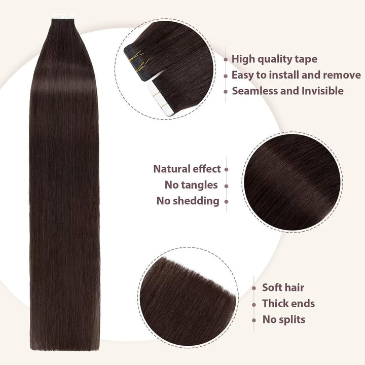 - Material: 1- 100% Remy Echthaar, seidig, weich und nicht verfilzen. 2- Hochwertige Tapes, die für Ihr Haar oder Ihre Kopfhaut unschädlich sind.