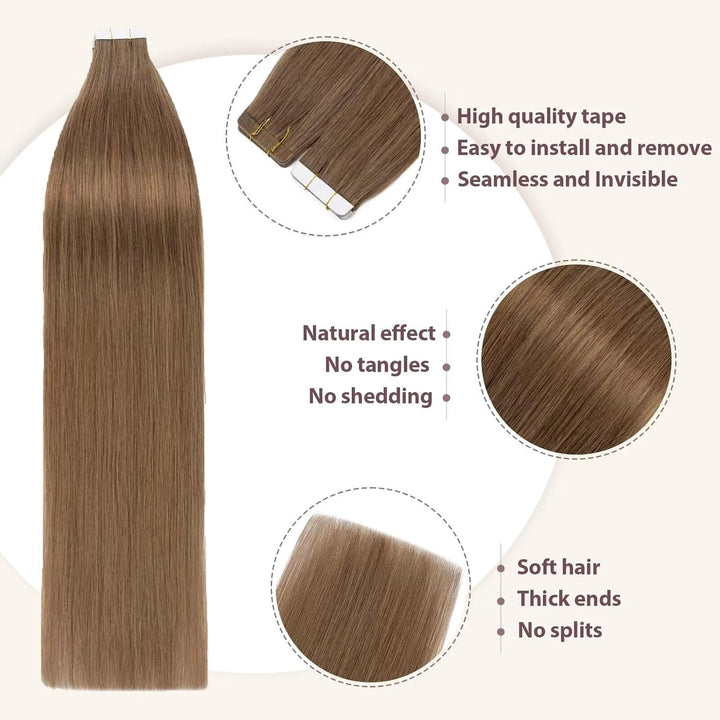 - Material: 1- 100% Remy Echthaar, seidig, weich und nicht verfilzen. 2- Hochwertige Tapes, die für Ihr Haar oder Ihre Kopfhaut unschädlich sind.
