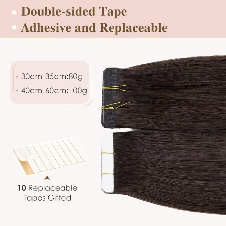 - 100% Remy Echthaar. Tape Extensions Echthaar können einfach wiederverwendet werden, indem neues Tape hinzugefügt wird und völlig unsichtbar ist, alles natürliche Aussehen verleiht.