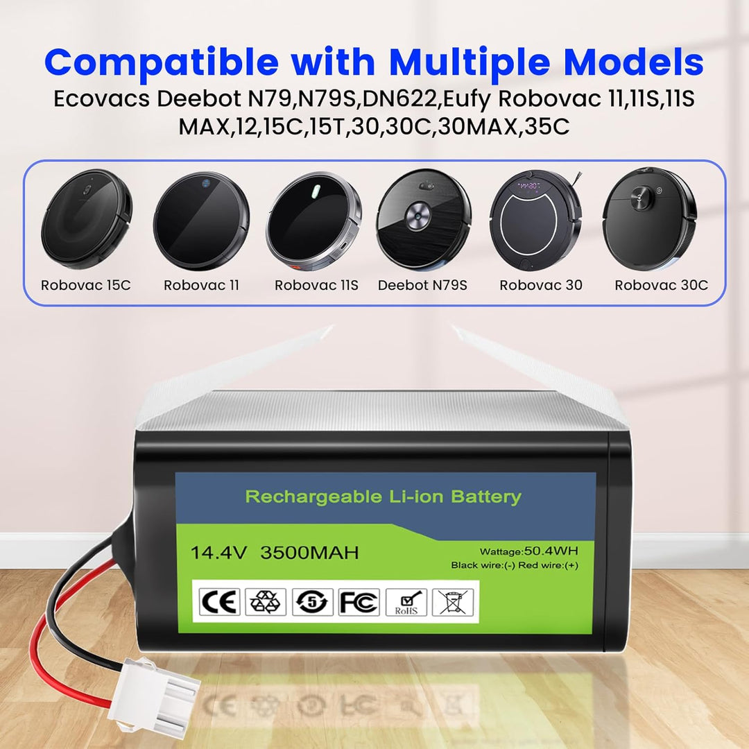 - 👙【Grössenpassung & kompatibles Modell】:Diese Upgraded Tesvor X500 Akku kompatibel mit Eufy RoboVac 11 11S / MAX 12 15T 15C MAX, 30 30C 35C, Deebot N79S N79 DN622 und IKHOS S14 S15 Akku. diese Batterie sind die gleiche Grösse wie das Original und