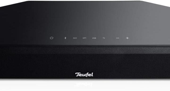 - Line-In, optischer Digitaleingang, Klanganpassungen, drei zusätzliche Soundmodi, darunter der Voice Mode verbessert die Verständlichkeit (auch für Hörgeschädigte), 7 Status-LEDs unterm edlen Stoffcover dimmen automatisch