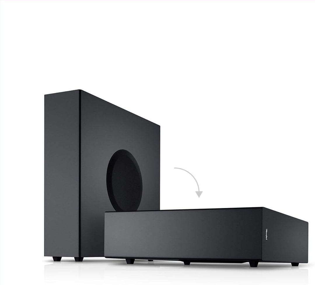 - Ultra-kompakte, vielseitige Soundbar mit schlankem Subwoofer für mitreissenden Sound bei Filmton, Musik und Games