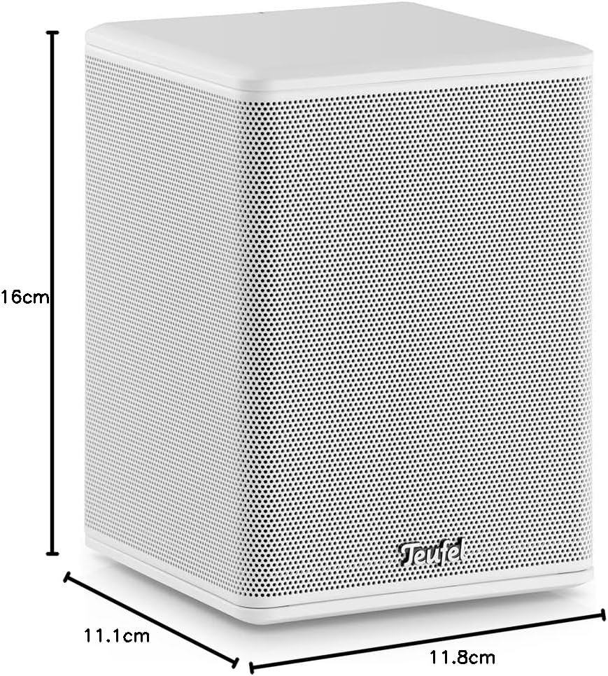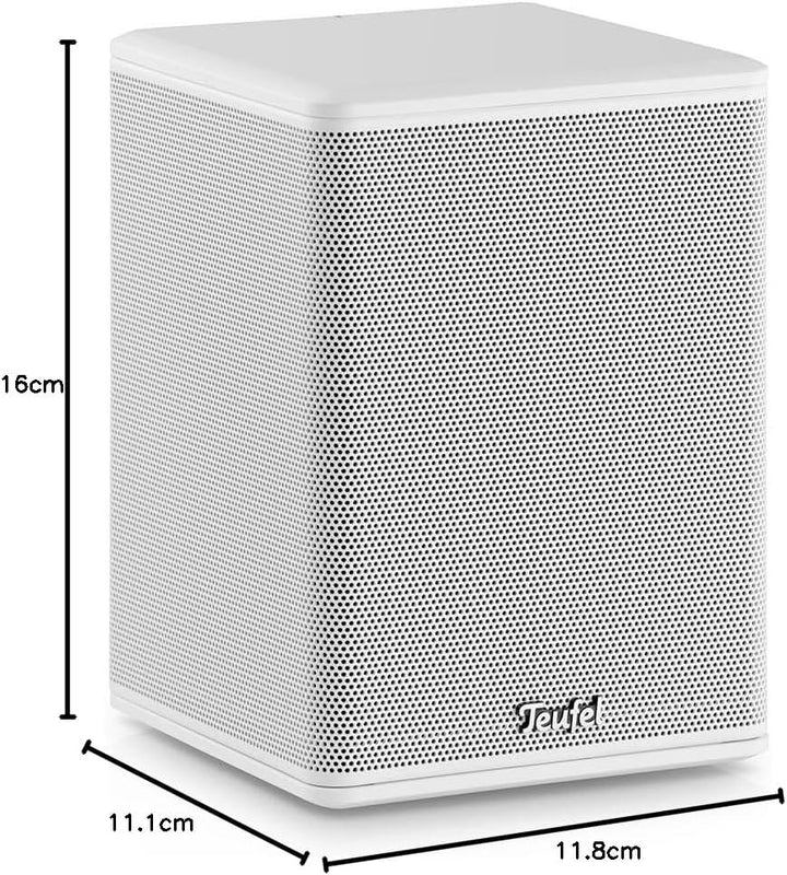 - Kabelloses, aktives Stereo-Lautsprecher-Paar als Rear-Speaker-Erweiterungsset für geeignete Teufel Systeme