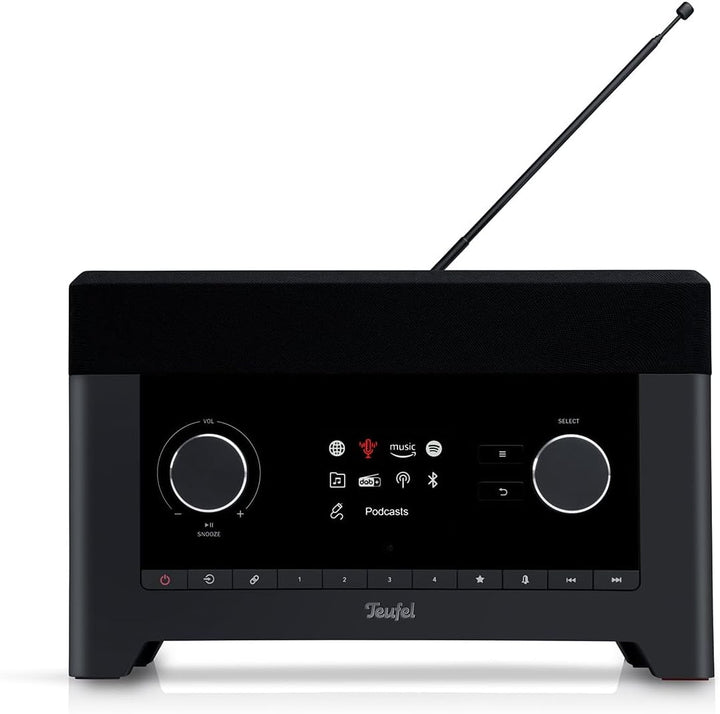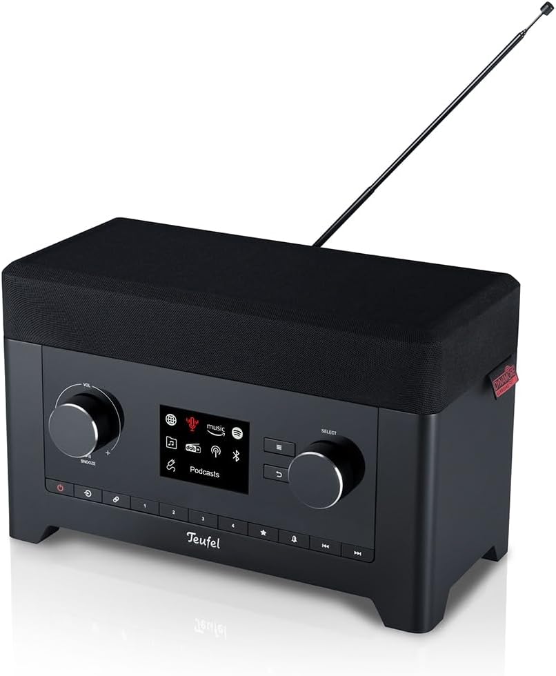 - Weckfunktion mit zwei Weckzeiten, starte jeden Tag mit Musik in Teufel Qualität, dimmbares, grosses Farbdisplay informiert über Uhrzeit, Sender, Titel etc.