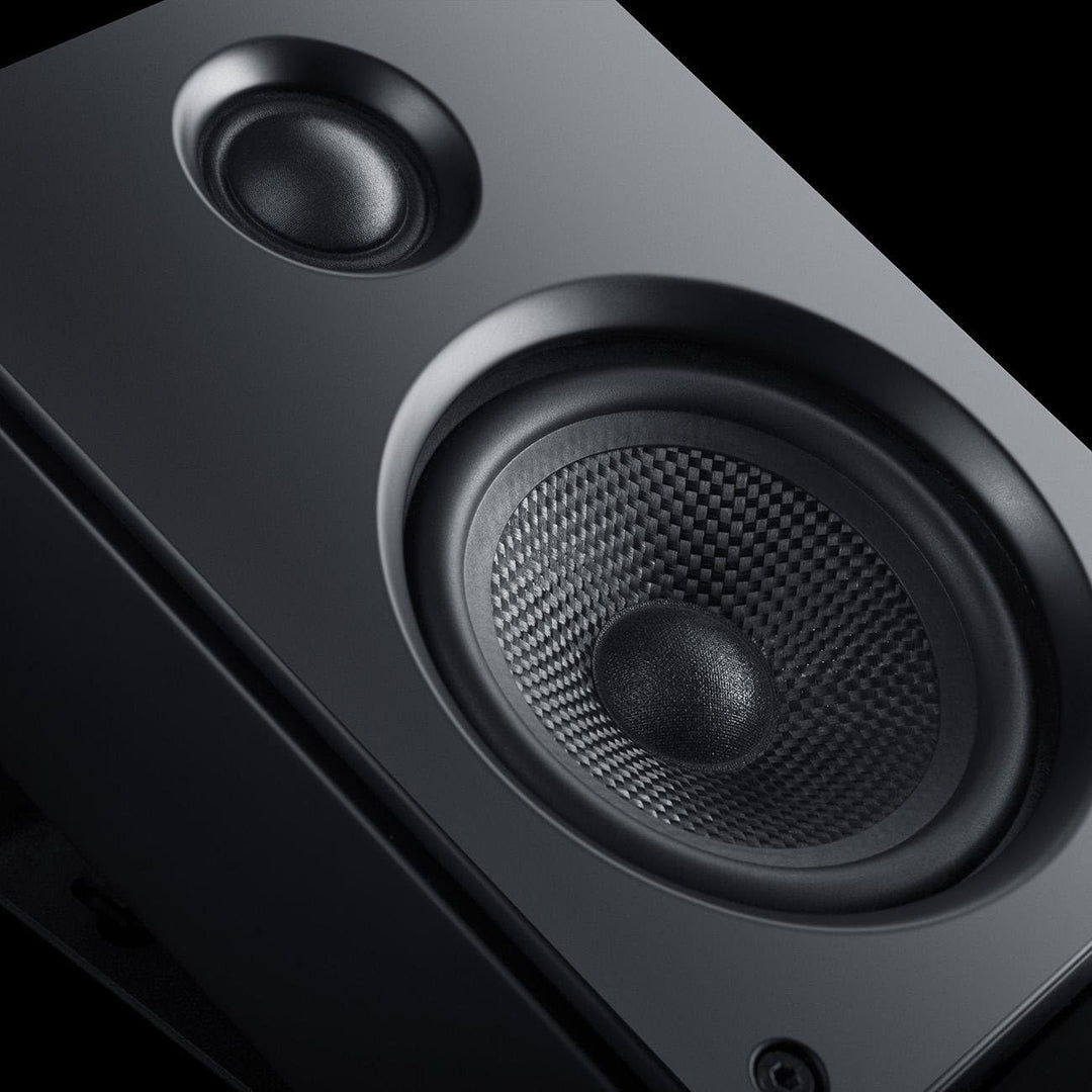 - Kann direkt auf Stand- oder Regallautsprecher positioniert werden