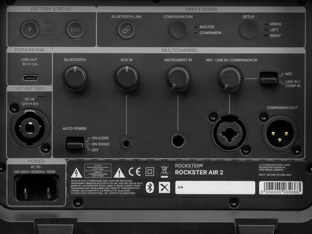 - Bluetooth 5.0 mit aptX, aptX HD und AAC für eine verlustfreie Übertragung vom Smartphone/Notebook, verbinde zwei ROCKSTER AIR 2 kabellos als Stereo-Setup oder bis zu 10 ROCKSTER AIR 2 mit XLR-Kabel im DJ-Setup