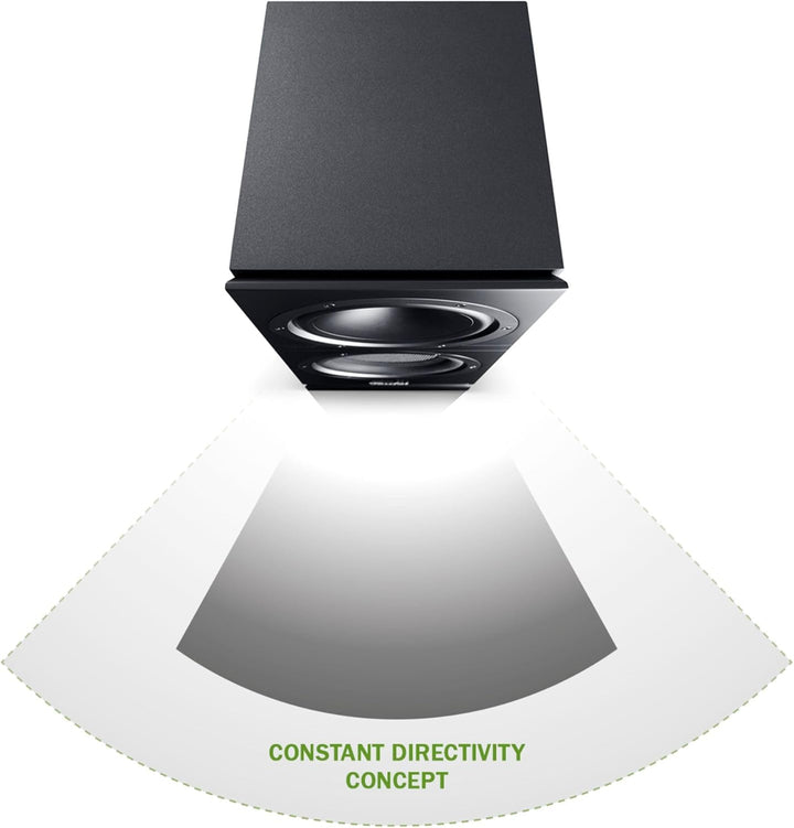 - Constant Directivity Concept mit Waveguide für gleichen Klang an jeder Hörposition