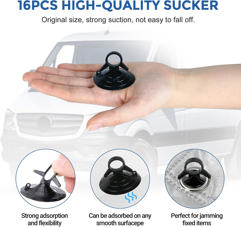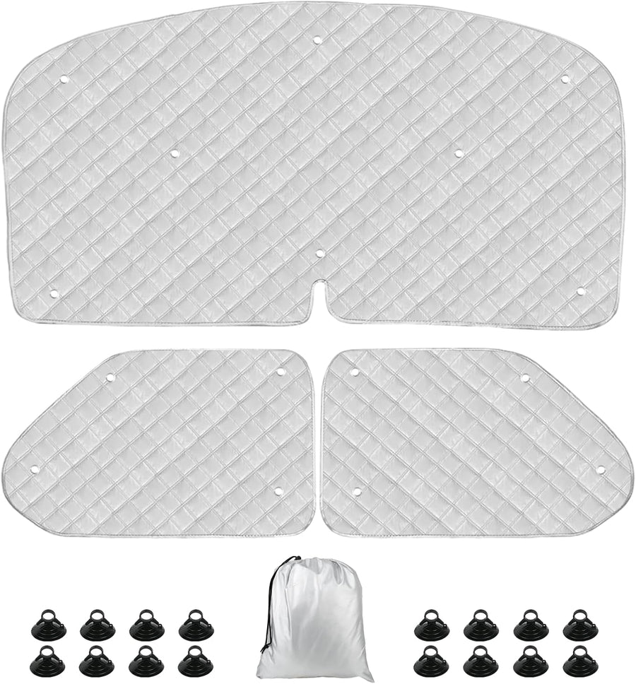 - Paket: Wird mit 1 Frontscheibenabdeckung und 2 Seitenscheibenabdeckungen geliefert. Ausserdem mit 1 Aufbewahrungsbeutel und 16 extra starken Saugnäpfen zur Fixierung des Bezuges.